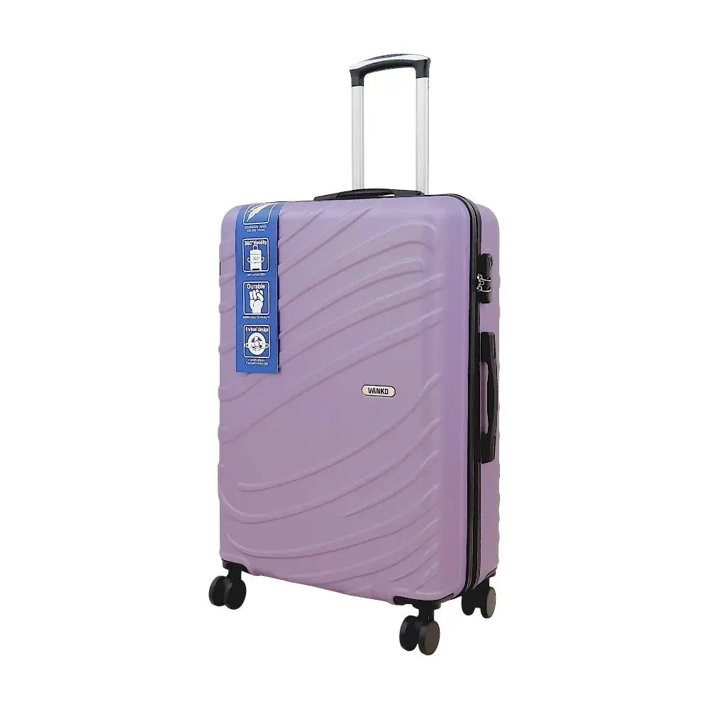 A VANKO világos lila keményfedeles bőrönd tökéletes választás, ha praktikus, mégis stílusos útitársat keresel utazásokhoz vagy repülős poggyásznak. A modern, hullámvonalas mintázatú külső nemcsak elegáns megjelenést biztosít, hanem extra ellenállást is nyújt a mindennapi igénybevétellel szemben.