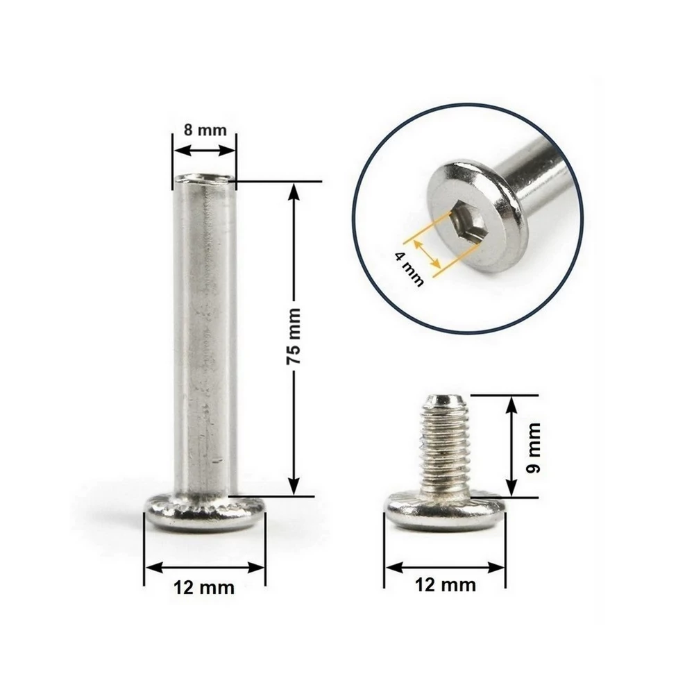 A tengely egyik oldala belső menetes, a másik oldalon pedig egy csavar található, amely menetrögzítő bevonattal van ellátva a biztonságos és stabil rögzítés érdekében.